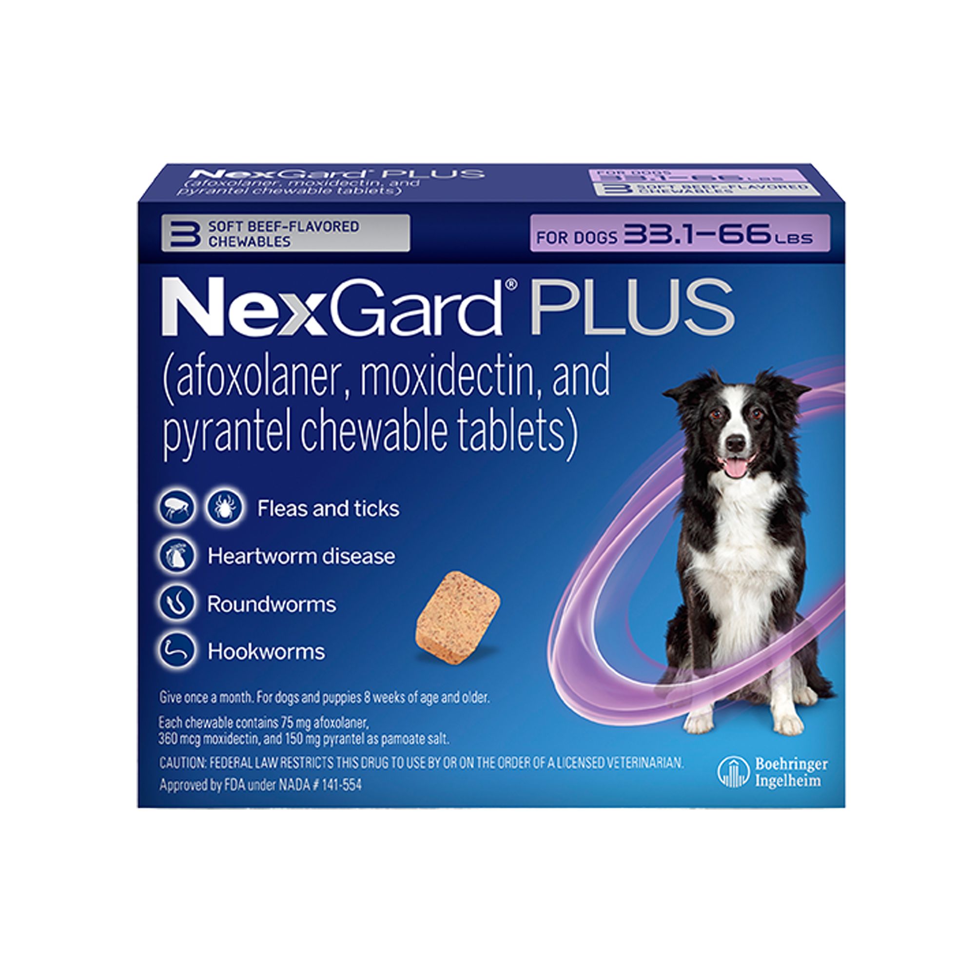 NexGard Plus Chewable Tablets for Dogs 33.166 lbs, Purple Box